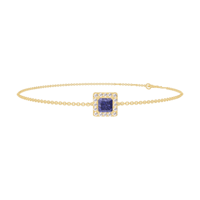 « L'ATELIER » Nº200618Armband Gelbgold 375/-(9Kt) - Blauer Saphir Prinzess 0.3 Karat - Halo Diamant - Kette Ankerkette