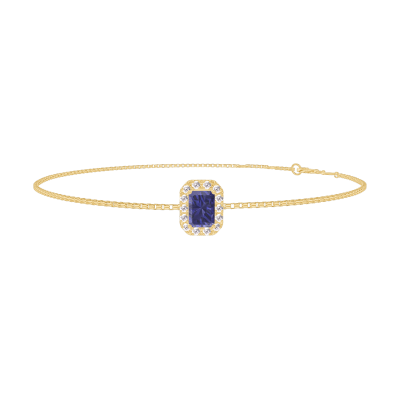 « L'ATELIER » NR. 200654Armband Gelbgold 375/-(9Kt) - Blauer Saphir Rechteckig 0.3 Karat - Halo Diamant - Kette Venezianerkette