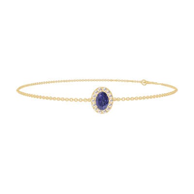 « L'ATELIER » Nº200682Armband Gelbgold 375/-(9Kt) - Blauer Saphir Oval 0.3 Karat - Halo Diamant - Kette Ankerkette