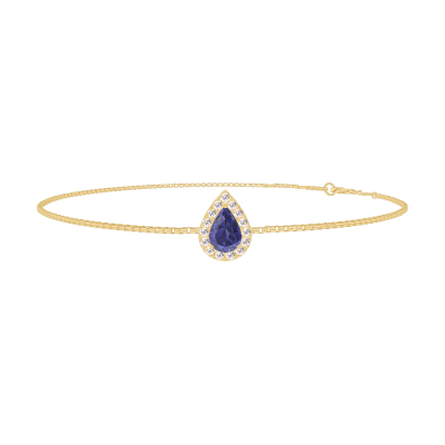 « L'ATELIER » Nº200718Armband Gelbgold 375/-(9Kt) - Blauer Saphir Tropfen 0.3 Karat - Halo Diamant - Kette Venezianerkette