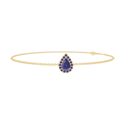 « L'ATELIER » NR. 200729Armband Gelbgold 750/-(18Kt) - Blauer Saphir Tropfen 0.3 Karat - Halo Blauer Saphir - Kette Ankerkette