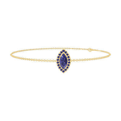 « L'ATELIER » NR. 200762Armband Gelbgold 375/-(9Kt) - Blauer Saphir Marquise 0.3 Karat - Halo Blauer Saphir - Kette Ankerkette