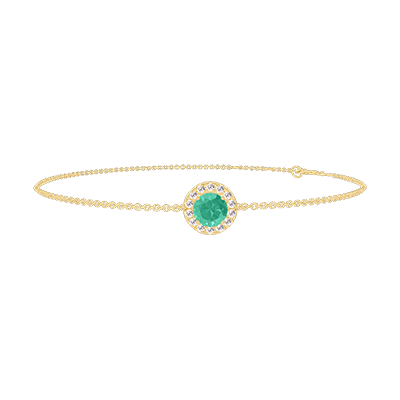 « L'ATELIER » NR. 200777Armband Gelbgold 750/-(18Kt) - Smaragd rund 0.3 Karat - Halo Diamant - Kette Ankerkette 4.7 (3)