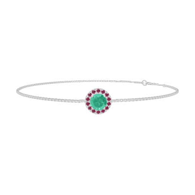 « L'ATELIER » Nº200792Armband Weißgold 375/-(9Kt) - Smaragd rund 0.3 Karat - Halo Rubin - Kette Venezianerkette 4.7