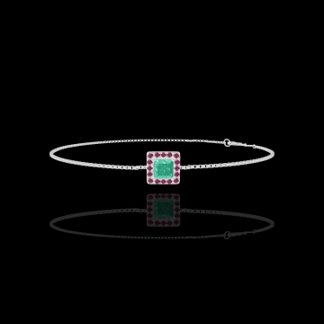 « L'ATELIER » Nº200823Armband Weißgold 750/-(18Kt) - Smaragd Prinzess 0.3 Karat - Halo Rubin - Kette Venezianerkette