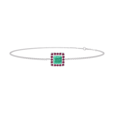« L'ATELIER » Nº200824Armband Weißgold 375/-(9Kt) - Smaragd Prinzess 0.3 Karat - Halo Rubin - Kette Venezianerkette