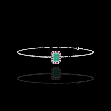 « L'ATELIER » Nº200855Armband Weißgold 750/-(18Kt) - Smaragd Rechteckig 0.3 Karat - Halo Rubin - Kette Venezianerkette