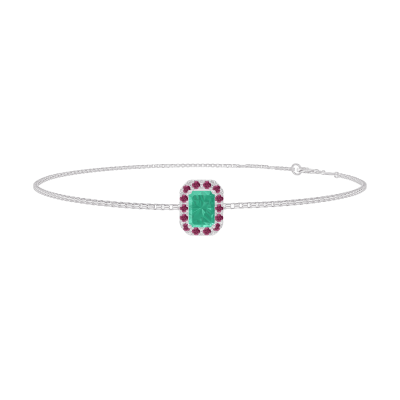 « L'ATELIER » Nº200856Armband Weißgold 375/-(9Kt) - Smaragd Rechteckig 0.3 Karat - Halo Rubin - Kette Venezianerkette
