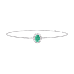 Armband Weißgold 750/-(18Kt) - Smaragd Oval 0.3 Karat - Halo Diamant - Kette Venezianerkette
