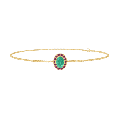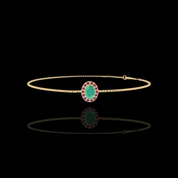 « L'ATELIER » Nº200885Armband Gelbgold 750/-(18Kt) - Smaragd Oval 0.3 Karat - Halo Rubin - Kette Venezianerkette