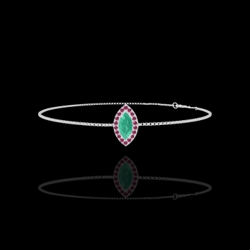 « L'ATELIER » Nº200951Armband Weißgold 750/-(18Kt) - Smaragd Marquise 0.3 Karat - Halo Rubin - Kette Venezianerkette