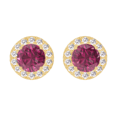 Ohrringe Gelbgold 375/-(9Kt) - Rubin rund 0.3 Karat (2 X) - Halo Diamant