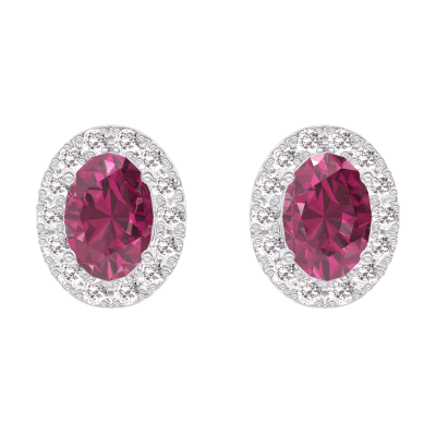 « L'ATELIER » NR. 201207Ohrringe Weißgold 750/-(18Kt) - Rubin Oval 0.3 Karat (2 X) - Halo Diamant