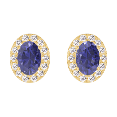 « L'ATELIER » Nº201301Ohrringe Gelbgold 750/-(18Kt) - Blauer Saphir Oval 0.3 Karat (2 X) - Halo Diamant