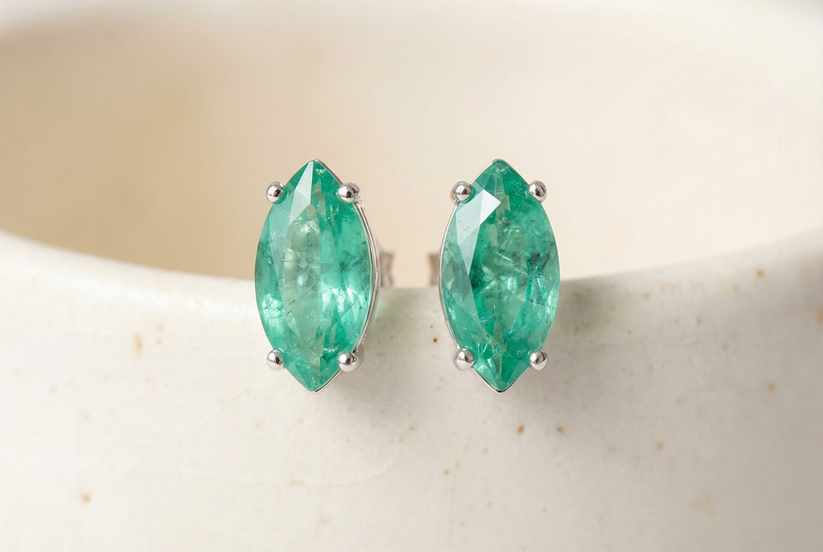 « L'ATELIER » NR. 201428Ohrringe Weißgold 375/-(9Kt) - Smaragd Marquise 0.3 Karat (2 X)