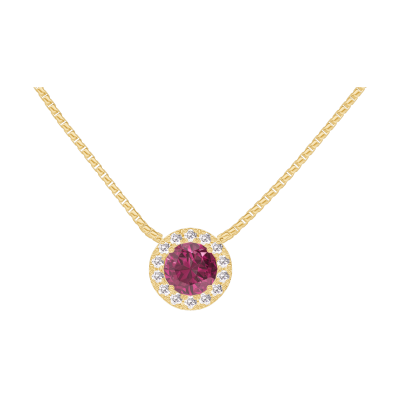 « L'ATELIER » NR. 201838Collier Gelbgold 375/-(9Kt) - Rubin rund 0.3 Karat - Halo Diamant - Kette Venezianerkette