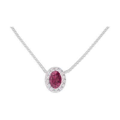« L'ATELIER » NR. 201935Collier Weißgold 750/-(18Kt) - Rubin Oval 0.3 Karat - Halo Diamant - Kette Venezianerkette