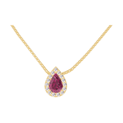 « L'ATELIER » Nº201965Collier Gelbgold 750/-(18Kt) - Rubin Tropfen 0.3 Karat - Halo Diamant - Kette Venezianerkette