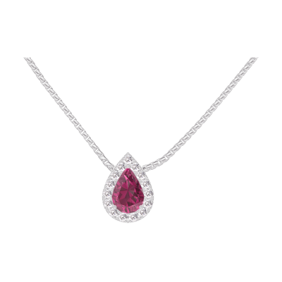 « L'ATELIER » NR. 201967Collier Weißgold 750/-(18Kt) - Rubin Tropfen 0.3 Karat - Halo Diamant - Kette Venezianerkette