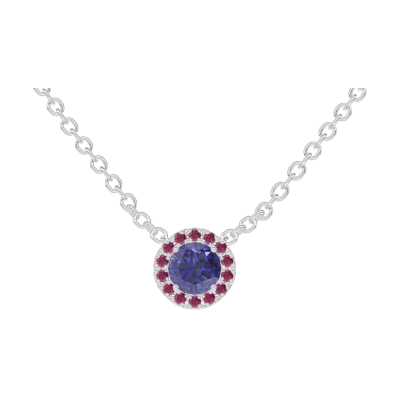 « L'ATELIER » NR. 202036Collier Weißgold 375/-(9Kt) - Blauer Saphir rund 0.3 Karat - Halo Rubin - Kette Ankerkette