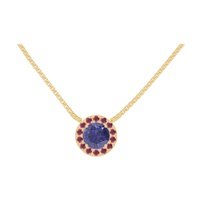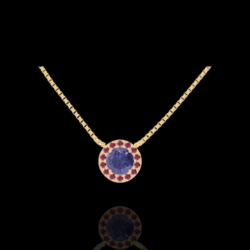 « L'ATELIER » Nº202037Collier Gelbgold 750/-(18Kt) - Blauer Saphir rund 0.3 Karat - Halo Rubin - Kette Venezianerkette