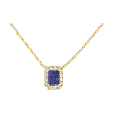 « L'ATELIER » Nº202094Collier Gelbgold 375/-(9Kt) - Blauer Saphir Rechteckig 0.3 Karat - Halo Diamant - Kette Venezianerkette