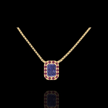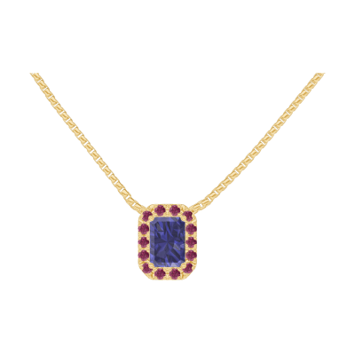 « L'ATELIER » Nº202101Collier Gelbgold 750/-(18Kt) - Blauer Saphir Rechteckig 0.3 Karat - Halo Rubin - Kette Venezianerkette