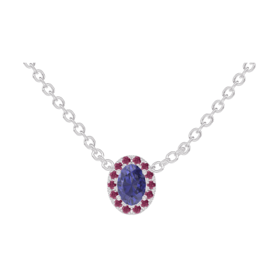 « L'ATELIER » Nº202131Collier Weißgold 750/-(18Kt) - Blauer Saphir Oval 0.3 Karat - Halo Rubin - Kette Ankerkette