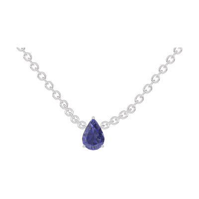 « L'ATELIER » Nº202147Collier Weißgold 750/-(18Kt) - Blauer Saphir Tropfen 0.3 Karat - Kette Ankerkette