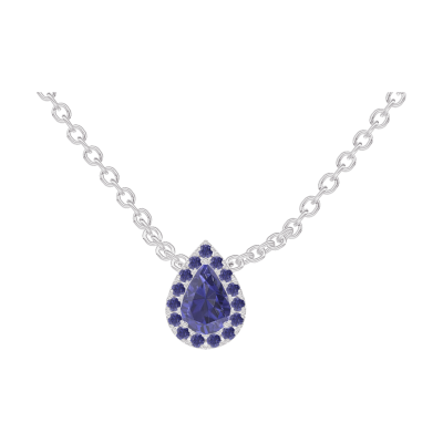« L'ATELIER » Nº202172Collier Weißgold 375/-(9Kt) - Blauer Saphir Tropfen 0.3 Karat - Halo Blauer Saphir - Kette Ankerkette