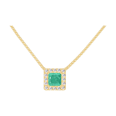 « L'ATELIER » Nº202254Collier Gelbgold 375/-(9Kt) - Smaragd Prinzess 0.3 Karat - Halo Diamant - Kette Venezianerkette