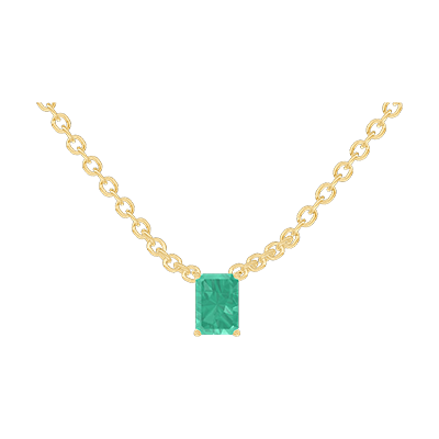 « L'ATELIER » Nº202274Collier Gelbgold 375/-(9Kt) - Smaragd Rechteckig 0.3 Karat - Kette Ankerkette