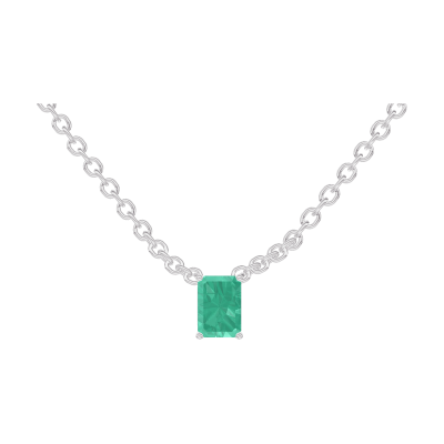« L'ATELIER » NR. 202276Collier Weißgold 375/-(9Kt) - Smaragd Rechteckig 0.3 Karat - Kette Ankerkette