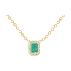 Collier Gelbgold 750/-(18Kt) - Smaragd Rechteckig 0.3 Karat - Halo Diamant - Kette Ankerkette