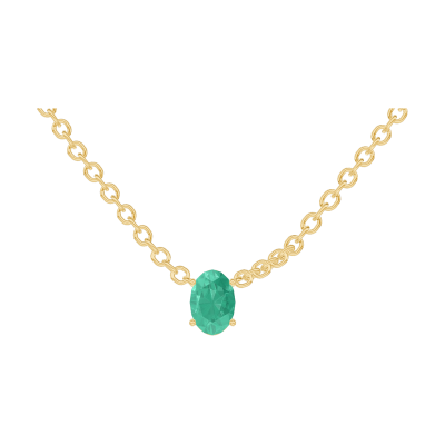 « L'ATELIER » NR. 202306Collier Gelbgold 375/-(9Kt) - Smaragd Oval 0.3 Karat - Kette Ankerkette