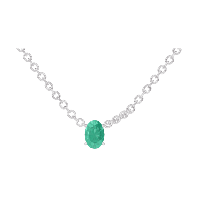 « L'ATELIER » NR. 202307Collier Weißgold 750/-(18Kt) - Smaragd Oval 0.3 Karat - Kette Ankerkette