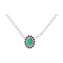 « L'ATELIER » NR. 202323Collier Weißgold 750/-(18Kt) - Smaragd Oval 0.3 Karat - Halo Rubin - Kette Ankerkette