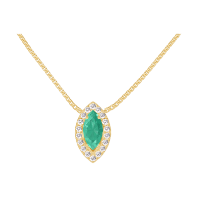« L'ATELIER » Nº202381Collier Gelbgold 750/-(18Kt) - Smaragd Marquise 0.3 Karat - Halo Diamant - Kette Venezianerkette