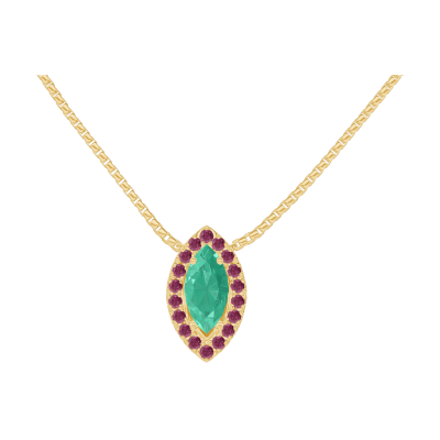 « L'ATELIER » Nº202389Collier Gelbgold 750/-(18Kt) - Smaragd Marquise 0.3 Karat - Halo Rubin - Kette Venezianerkette