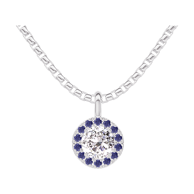 « L'ATELIER » NR. 202579Anhänger Weißgold 750/-(18Kt) - Diamant rund 0.3 Karat - Halo Blauer Saphir - Kette Venezianerkette 4 (3)