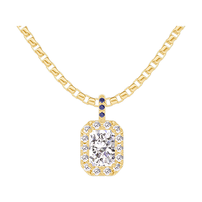 « L'ATELIER » Nº202878Anhänger Gelbgold 375/-(9Kt) - Diamant Rechteckig 0.3 Karat - Halo Diamant - Fassung Blauer Saphir - Kette Venezianerkette