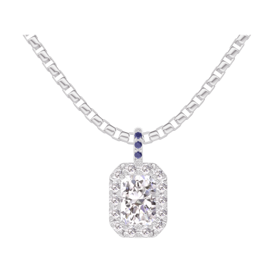 « L'ATELIER » Nº202879Anhänger Weißgold 750/-(18Kt) - Diamant Rechteckig 0.3 Karat - Halo Diamant - Fassung Blauer Saphir - Kette Venezianerkette