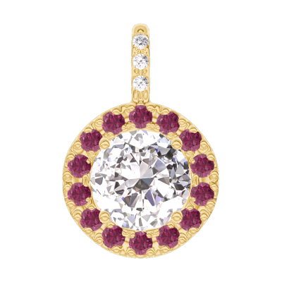 « L'ATELIER » Nº203654Anhänger Gelbgold 375/-(9Kt) - Labordiamant rund 0.3 Karat - Halo Rubin - Fassung Labordiamant - Keine Kette 4
