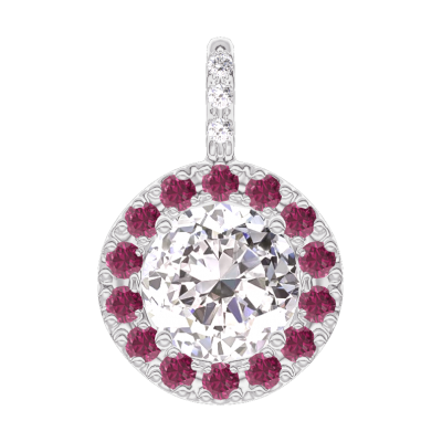 « L'ATELIER » Nº203656Anhänger Weißgold 375/-(9Kt) - Labordiamant rund 0.3 Karat - Halo Rubin - Fassung Labordiamant - Keine Kette 4