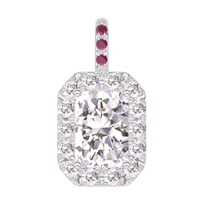 « L'ATELIER » NR. 203995Anhänger Weißgold 750/-(18Kt) - Labordiamant Rechteckig 0.3 Karat - Halo Labordiamant - Fassung Rubin - Keine Kette