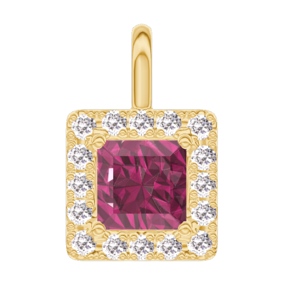 « L'ATELIER » Nº204946Anhänger Gelbgold 375/-(9Kt) - Rubin Prinzess 0.3 Karat - Halo Diamant - Keine Kette