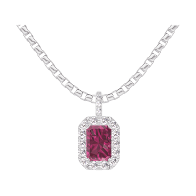 « L'ATELIER » Nº205176Anhänger Weißgold 375/-(9Kt) - Rubin Rechteckig 0.3 Karat - Halo Diamant - Fassung Diamant - Kette Venezianerkette