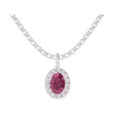 « L'ATELIER » Nº205367Anhänger Weißgold 750/-(18Kt) - Rubin Oval 0.3 Karat - Halo Diamant - Fassung Diamant - Kette Venezianerkette