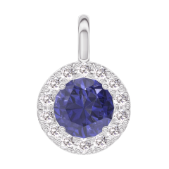 Anhänger Weißgold 375/-(9Kt) - Blauer Saphir rund 0.3 Karat - Halo Diamant - Keine Kette