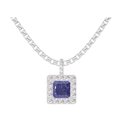 « L'ATELIER » NR. 206136Anhänger Weißgold 375/-(9Kt) - Blauer Saphir Prinzess 0.3 Karat - Halo Diamant - Fassung Diamant - Kette Venezianerkette